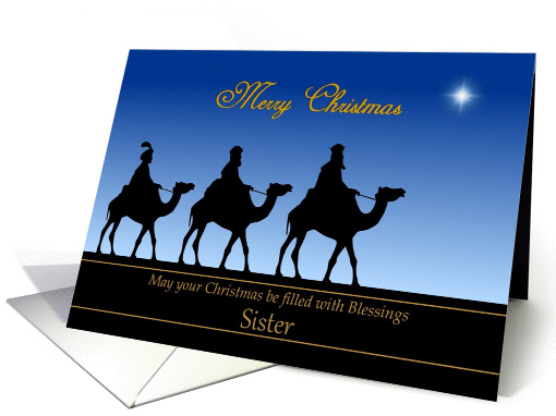 | Artist Notes: | Celebrate the true meaning of Christmas by sending to your Sister this lovely card of The Three Magi following the Star of Bethlehem. You can use the inner Religious verse or add sentiments of your own. ©2014 SmudgeArt |