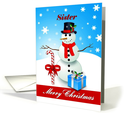 | Title: | Sister / Merry Christmas - Snowman/candy-cane/ gift |