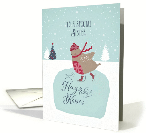 | Artist Notes: | Wish your special sister a Merry Christmas with this card featuring an original illustration of a cute skating robin wearing a scarf and bonnet. In the background are pine trees, a Christmas tree with ornaments and a star and softly falling snowflakes. Colors: red, turquoise, white. You can edit text inside card. Custom requests welcome. |