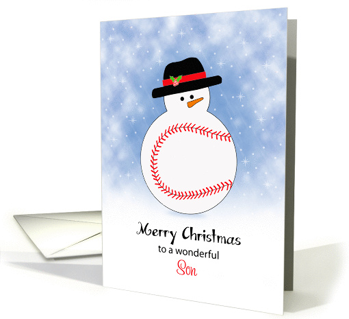 For Son Snowman Baseball Themed Christmas Card-Snow Scene
