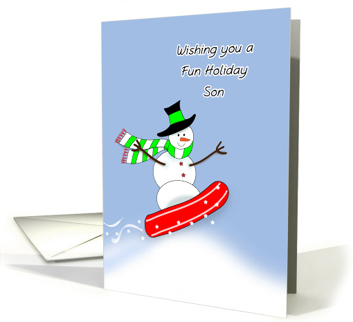 | Title: | For Son Christmas Snowboarding Greeting Card-Snowman in Snow Scene |