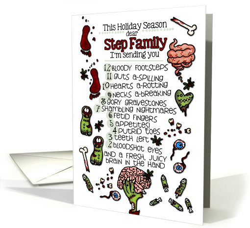 | Artist Notes: | "This Holiday Season dear step family I'm sending you" The Zombie 12 Days of Christmas complete with bloody footsteps, spillings guts, rotting hearts, breaking necks, gory gravestones and a whole host of other Zombie fun for the Holidays! |
