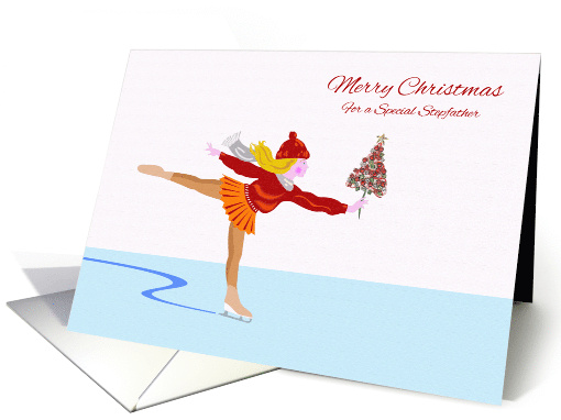 Title: | Merry Christmas for Stepfather with Ice Skater and Christmas Tree |