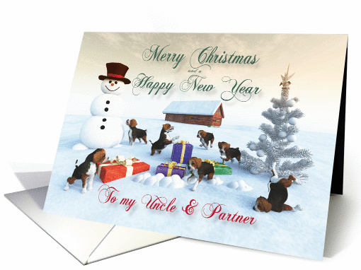 | Title: | Beagle Puppies Christmas New Year Snowscene Uncle & Partner |