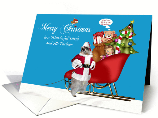 | Title: | Christmas to Uncle and Partner, Raccoon Santa Claus with a full sleigh |