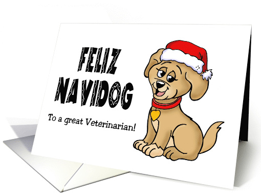 | Artist Notes: | Humorous Christmas Card for a veterinarian, with a cute cartoon dog wearing a Santa hat. The words say: Feliz Navidog! (a pun for Feliz Navidad) To a great Veterinarian. Inside says: May the holiday season bring you joy and happiness! |