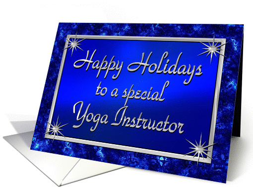 | Artist Notes: | A wonderful way to wish your yoga instructor Happy Holidays. This blue and silver card with shiny silver stars is a great way to let them know they are well appreciated. |