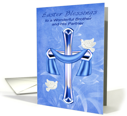 | Title: | Easter to Brother and Partner, Religious, cross, doves, blue flowers |