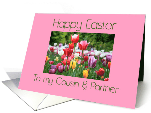 | Title: | Cousin and Partner Happy Easter Multicolored Tulips |