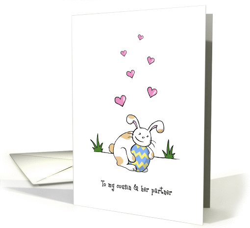 | Title: | Happy Easter to cousin and partner, Cute bunny rabbit hugs egg |