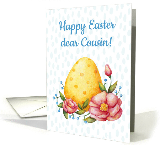 Easter watercolor card for Cousin with Egg and flowers.