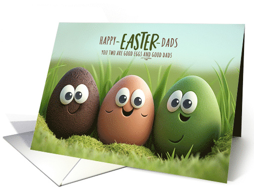 | Artist Notes: | Three cute Easter eggs are featured on this silly Easter card for two Dads with green grass and fun humor because both your Dads are good eggs. |