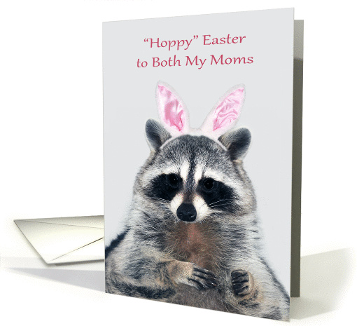 | Title: | Easter to Both My Moms, an adorable raccoon wearing bunny ears |