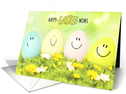 | Title: | for Two Moms on Easter Yellow Green and Blue Smiling Eggs |