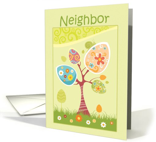 Eggs on Spring Tree Easter Greeting for Neighbor
