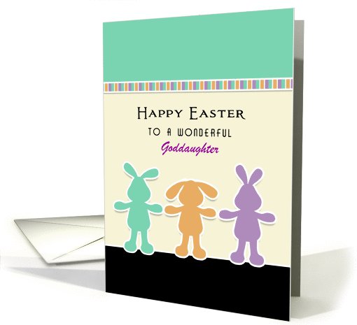 | Title: | For Goddaughter Easter Greeting Card-Three Bunny Rabbits-Custom Text |