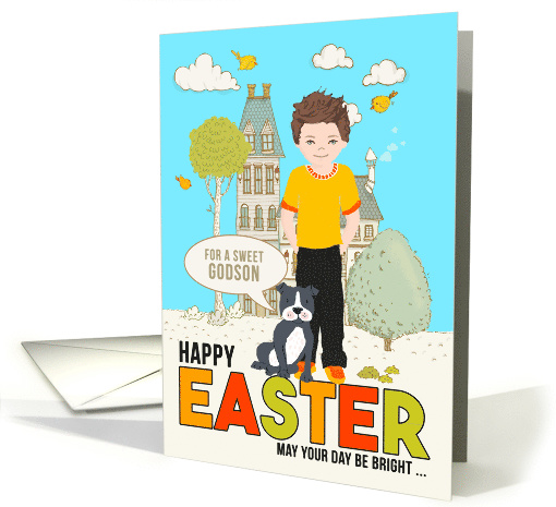 | Title: | for a Young Godson on Easter Caucasian Boy with Dog |