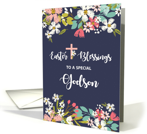 | Title: | Godson Easter Blessings of Risen Christ Flowers on Navy Blue |