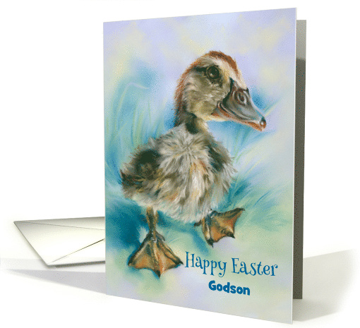 | Artist Notes: | A whimsical duckling walking happily through the spring grass rendered in soft pastel hues embellishes the cover of this Easter greeting along with text that may be customized for your godson or for anyone. |