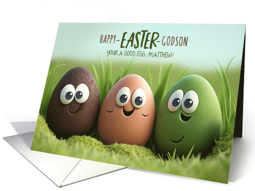 | Artist Notes: | Sending Easter Joy to a cute little boy who is your Godson when you add his name to this adorable and funny Easter egg themed greeting. |