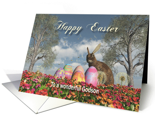 | Title: | Happy Easter bunny eggs and flowers to Godson |