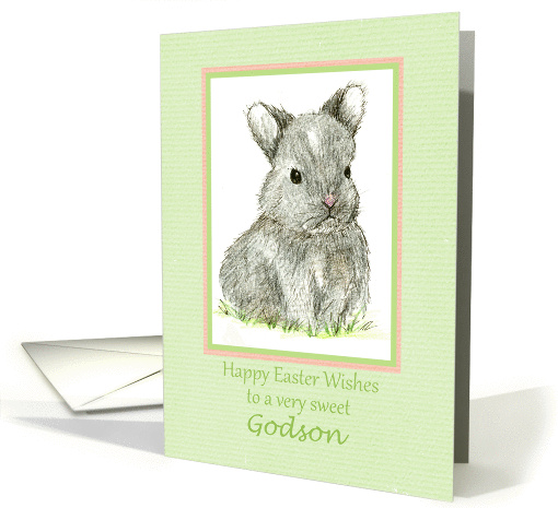 | Artist Notes: | A happy Easter godson greeting card decorated with a little gray rabbit drawn in ink and colored pencil on a spring green background. You can change the inside message to fit your needs. |