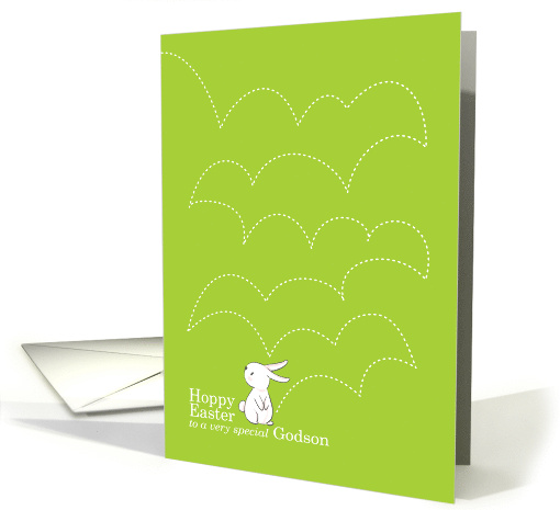 | Artist Notes: | Wish your Godson Happy Easter in the sweetest way with this hopping bunny Easter card. The Easter Bunny enters the bright green card and hops his way right and left, up and down, until he settles at the bottom of the card just in time, and with just enough space to wish your Godson HOPPY Easter. So sweet. Just like him. |