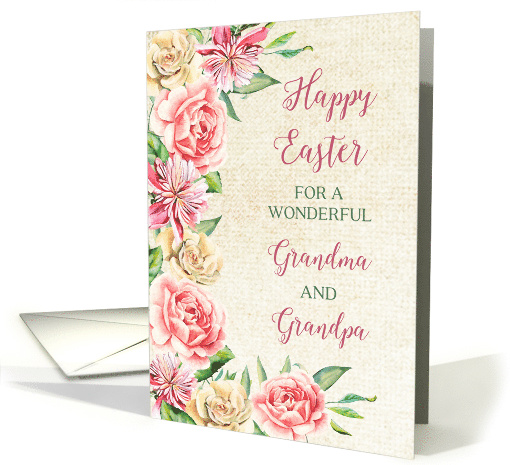 Artist Notes: | Wish your grandma and grandpa a happy Easter with this thoughtful pink and yellow watercolor floral card. |