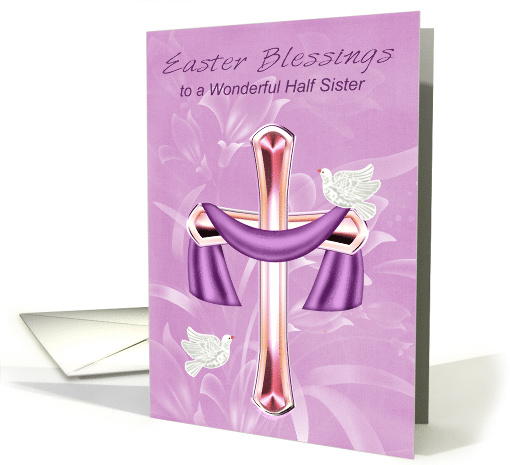 | Title: | Easter to Half Sister, Religious, cross with white doves and flowers |