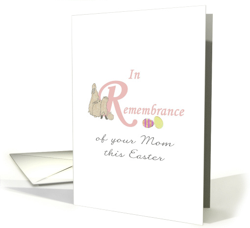 | Artist Notes: | In remembrance of mom during Easter. This card shows a family of bunnies huddling by the letter 'R' in 'Remembrance'. By the tail of the letter 'R' we have two Easter eggs. |