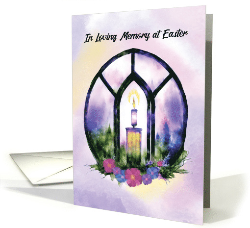 | Title: | In Memory at Easter Stained Glass Candle with Florals |
