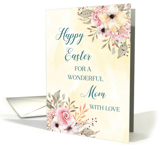 A charming happy Easter card for your mother with delicate pastel floral arrangements and thoughtful verse.