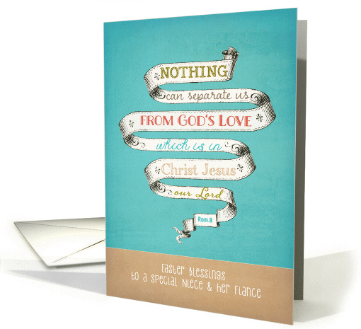 | Artist Notes: | This trendy retro Christian Easter card features a vintage banner (thank you, graphicsfairy) with a synopsis of different bible verses (Romans 8) on a teal and kraft paper color background. You can edit text inside card. Custom requests welcome. |