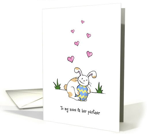 | Title: | Happy Easter to niece and partner, Cute bunny rabbit hugs egg |
