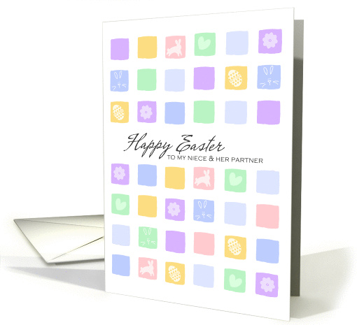 | Artist Notes: | Contemporary pastel-colored squares with sweet Easter ornaments makes this the perfect springtime card to send to your niece and her partner |