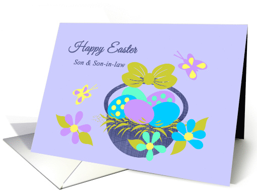 | Title: | Son Husband Easter Basket w Colored eggs, Flowers and Butterflies |