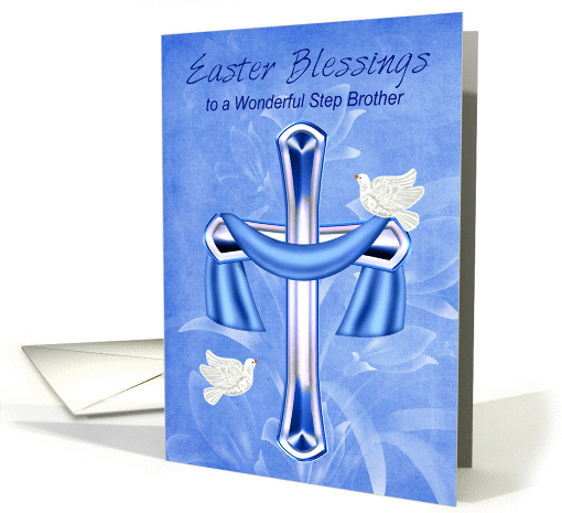 | Title: | Easter To Step Brother, Religious, cross with white doves, flowers |