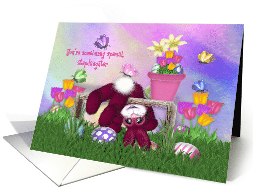 | Title: | Easter for a Stepdaughter,Pink Bunny, Eggs, Flowers Butterflies |