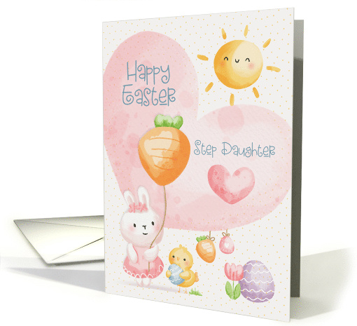 | Artist Notes: | Your step daughter is sure to be delighted with this adorable Happy Easter greeting featuring a bunny carrying a carrot balloon, a little chick, Easter eggs, and a smiling sun. |