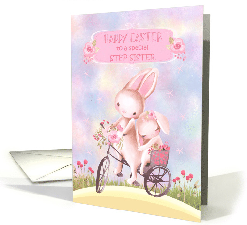 | Title: | Happy Easter for Young Step Sister Sweet Bunnies on a Bicycle |