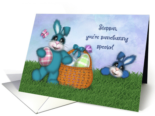| Title: | Easter for a Stepson, Adorable Bunnies with a Basket of Colored Eggs |