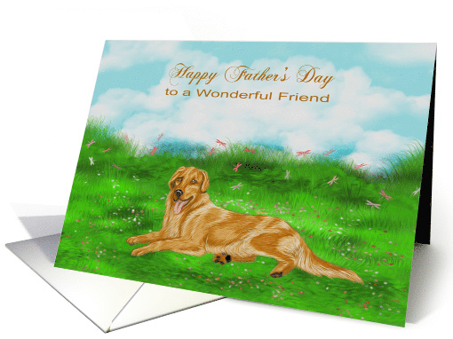 Title: | Father's Day to Friend with a Golden Retriever Relaxing in a Meadow |