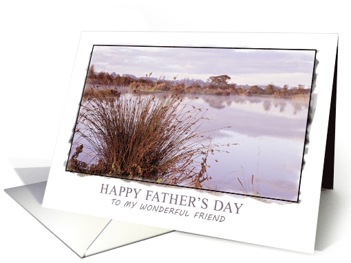 A beautiful view of a lake at dawn with rushes in the foreground. A great way to wish your friend a Happy Father's Day.