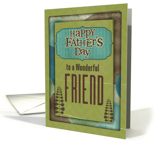 Say Happy Father's Day to a Wonderful Friend with this scrapbook style design of brown trees and colorful frames on a green chevron background.Original design by Betsy Bush for Dragonfire Graphics.Design elements by pixelscrapper.com