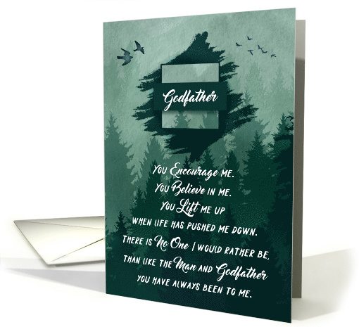 | Artist Notes: | A godfather's role in life is often that of a dad for some and this Father's Day card in ruggedly handsome tones and nature inspired theme carries a strong message for the Godfather who was your guiding light. |