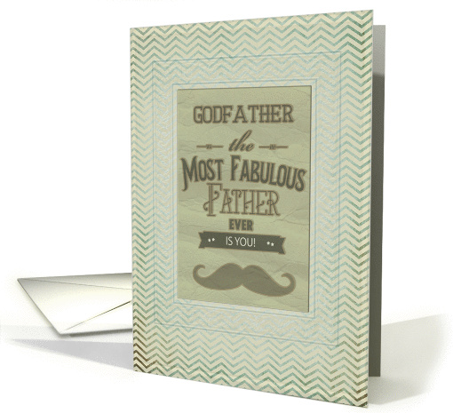 | Artist Notes: | Tell a Godfather just how fabulous a father he is with this masculine design that features a vintage crumpled paper effect with a distressed chevron patterned frame, a fun mustache, and the words "the most fabulous father ever is you!" |