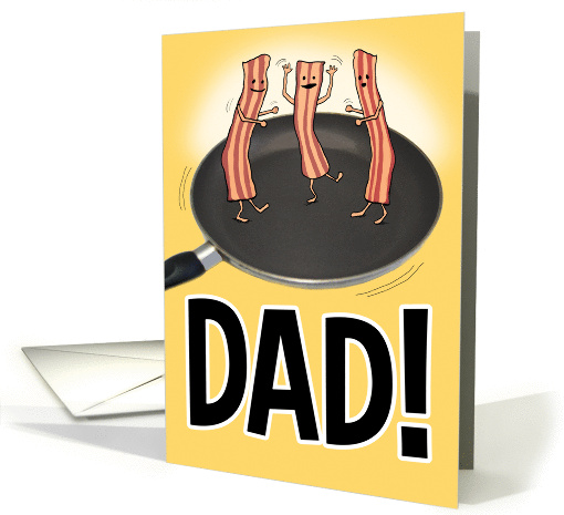 This cute and funny Father's Day card features some dancing bacon who encourage Dad to start shakin' his bacon for a sizzling day. Copyright Chuck Ingwersen 2015.