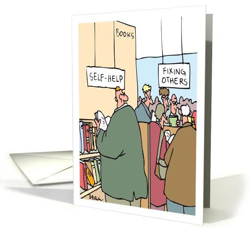 A man in a book store flips through a book in the "Self-Help" Section. He glances over to see a large group of people checking out books in the "Fixing Others" section. Inside reads, You're the best, Dad, I wouldn't change a thing Happy Father's Day! Thanks for checking out my greeting cards. More cards: http://www.greetingcarduniverse.com/community/store.asp?store_id=2337&gcu=42744787710&mid=cwu Search: "Cornered by Mike Baldwin+books" to see Cornered books on Amazon.