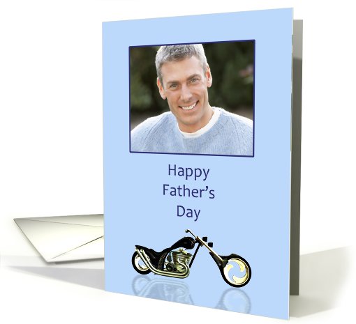 A motorbike with a reflection on a blue background. A great elegant card for Father's Day. All artwork copyright Norma Cornes