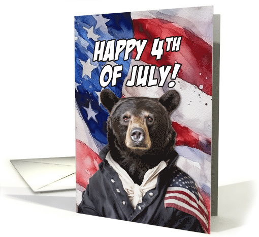 | Artist Notes: | A patriotic Black Bear dressed in stars and stripes on an American flag watercolor background with the text 'Happy 4th of July!'. The perfect card to send to a black bear mom or dad, a sanctuary or a rescue center to celebrate the birthday of America. |